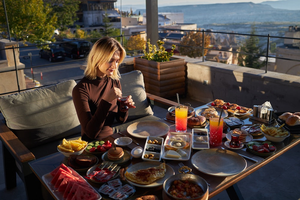 Breeze of Cappadocia'da Rüya Gibi Bir Tatil Sizi Bekliyor! Kapadokya'nın eşsiz güzelliğini ve lüksünü bir araya getiren Breeze of Cappadocia'da unutulmaz bir deneyime hazır olun. Özel balkonunuzdan seyredebileceğiniz, gökyüzünü adeta bir sanat eserine dönüştüren nefes kesici gün doğumlarıyla güne başlayın. Uçhisar'ın zirvesinden, volkanik güçlerin şekillendirdiği peribacaları, meyve bahçeleriyle dolu vadiler ve elma ve kayısı ağaçlarının tatlı kokusuyla büyüleyici Kapadokya manzarasının keyfini çıkarın.